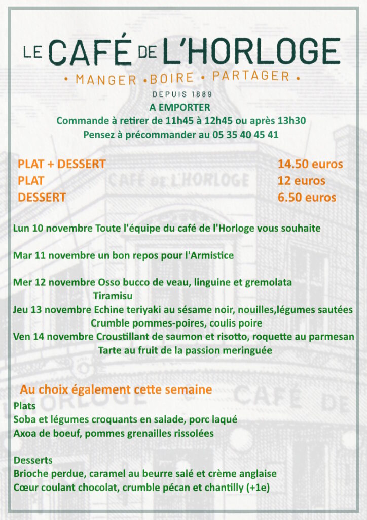 Dans ce medley de photos, vous trouverez les multiples plats que le café de l’horloge a pu proposer depuis sa reprise par